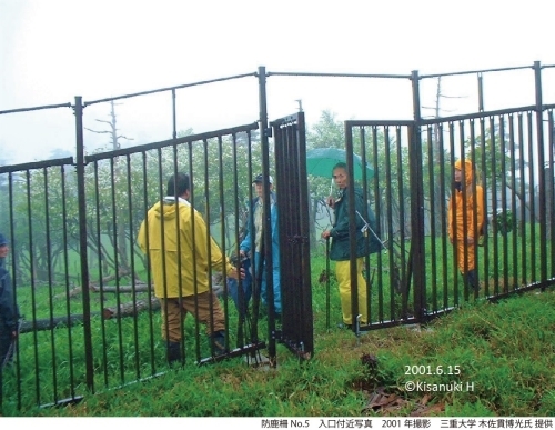 大台ヶ原では自然再生事業の一環で、シカの食害から植物を守る防鹿柵を設置しています。