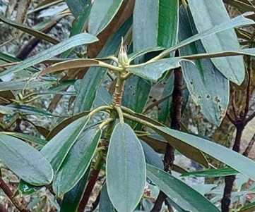 シャクナゲの仲間は日本に11種類ほどありますが、この付近(滝見尾根の群生地)に見られるのは「ツクシシャクナゲ」と言う種類です。