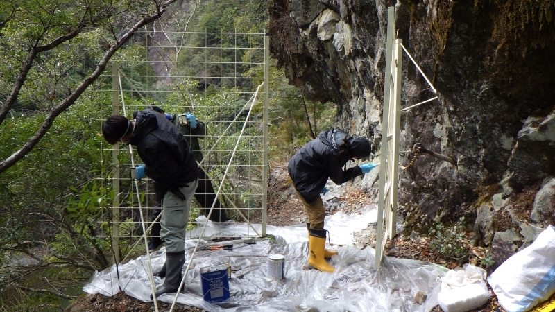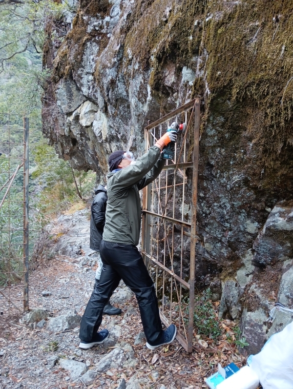 現在、大杉谷は閉山期間中。ゲートの補修は閉山期の今が作業のチャンスです。