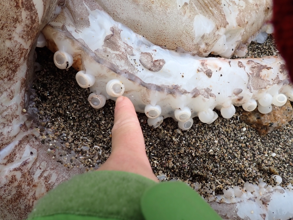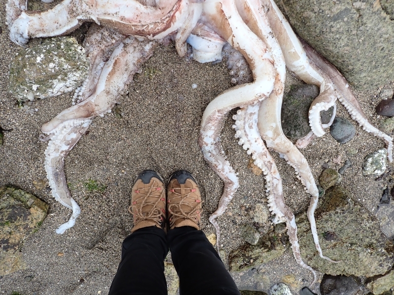 全長は2メートル超ですが、ダイオウイカとしては少し小ぶりでした。ただ、足先に立ってみると普段見るイカより大きいなと感じます。