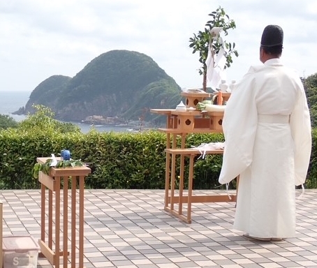 (海に向かって祝詞が捧げられる)