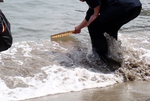 その後は近くの砂浜でイカの放流も行われました。
