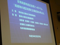 近畿地方環境事務所では、廃棄物処理法に基づく排出者責任の徹底等による廃棄物の適正処理の重要性について理解を深めていただくことを目的とした「産業廃棄物適正処理シンポジウム 廃棄物の適正処理と企業経営を考える」を平成24年2月29日(水)に大阪府立労働センターにおいて開催しました。