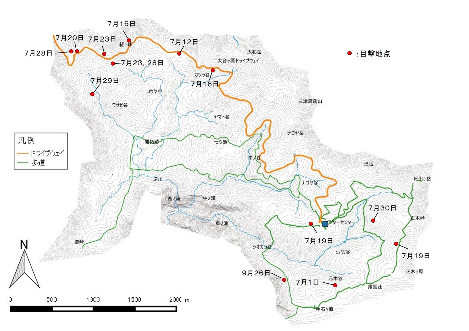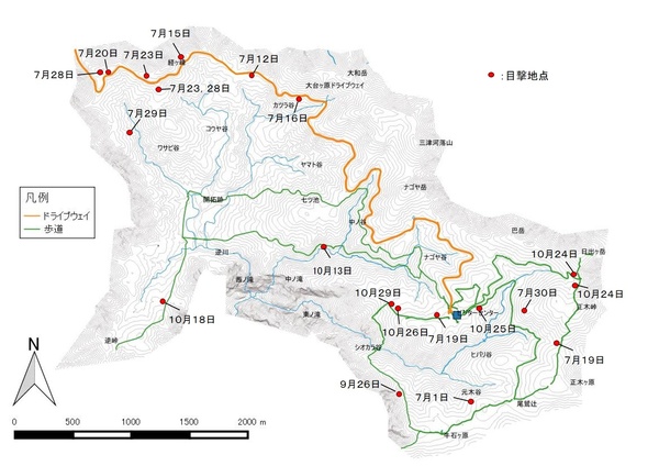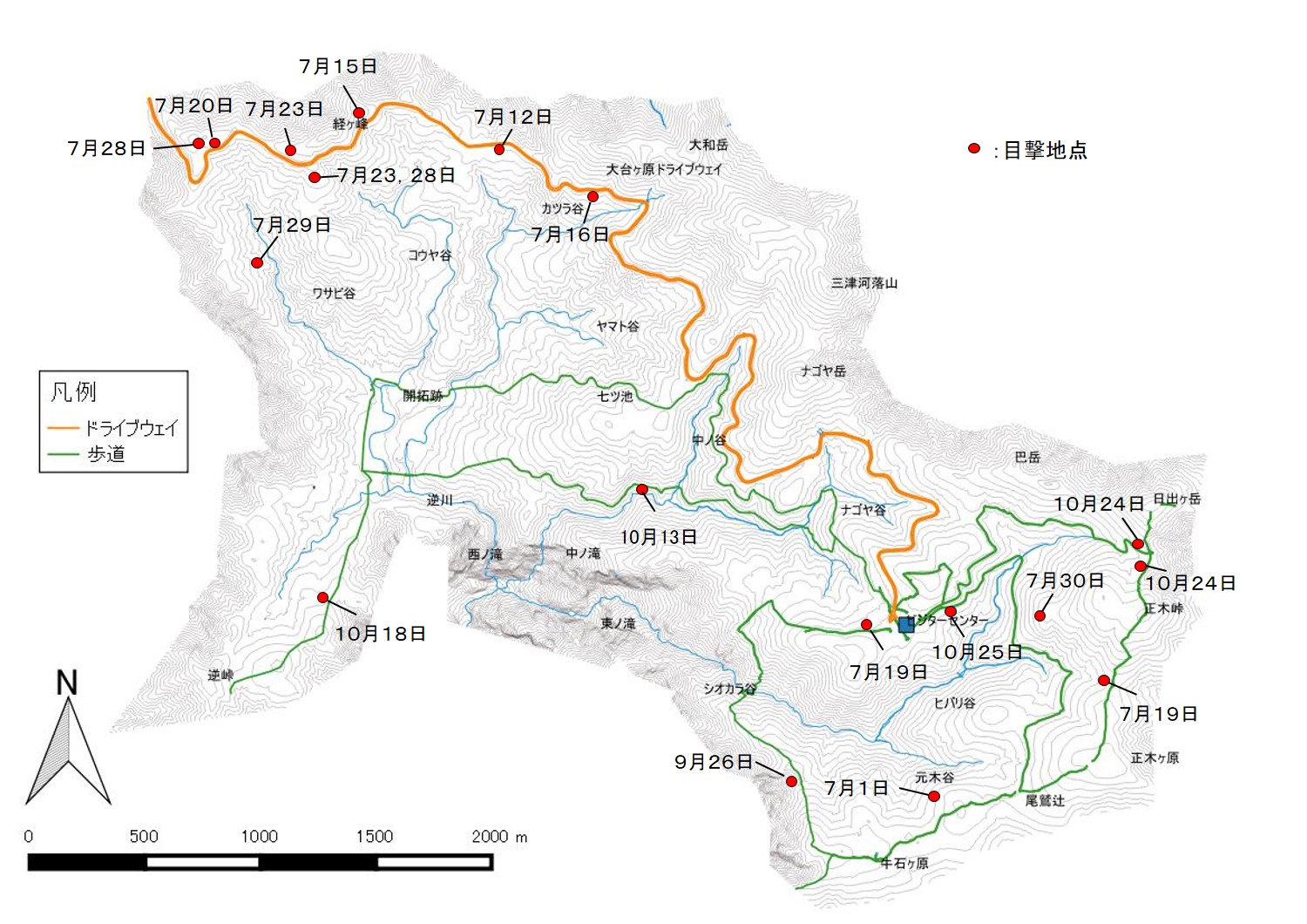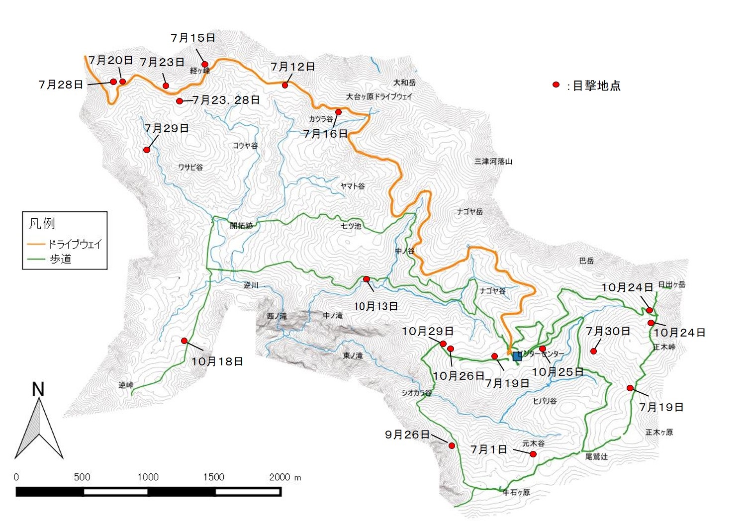 吉野熊野国立公園大台ヶ原地区におけるツキノワグマ出没情報(令和2年10月29日現在)
