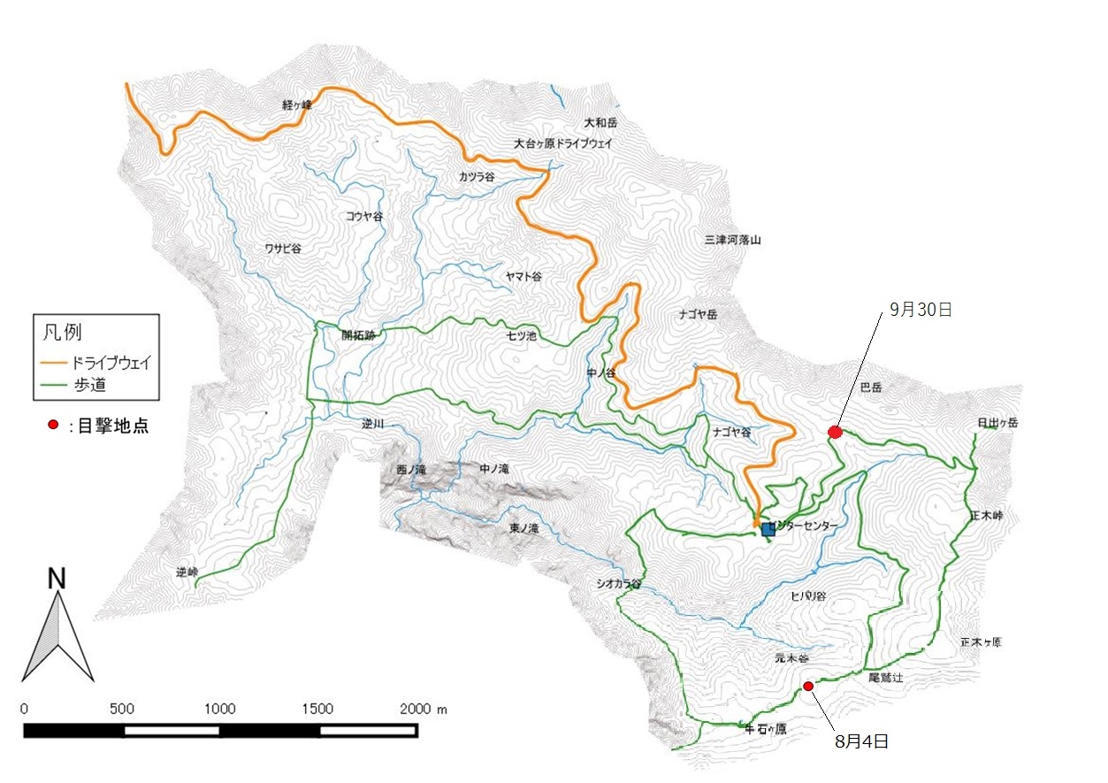 大台ヶ原地区におけるツキノワグマ出没情報(令和4年9月30日現在)