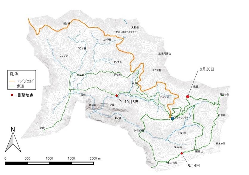 大台ヶ原地区におけるツキノワグマ出没情報(令和4年10月6日現在)