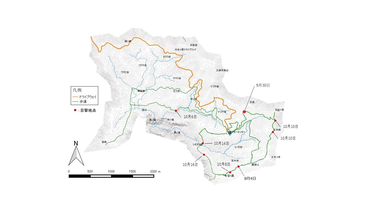 大台ヶ原地区におけるツキノワグマ出没情報(令和4年10月16日現在)