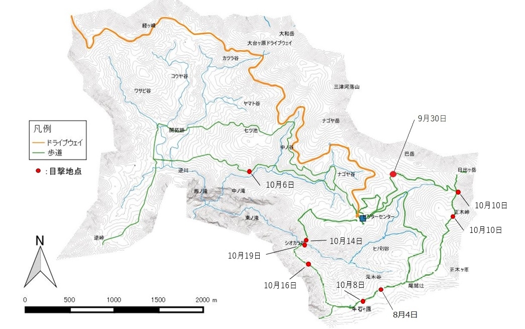 大台ヶ原地区におけるツキノワグマ出没情報(令和4年10月20日現在)