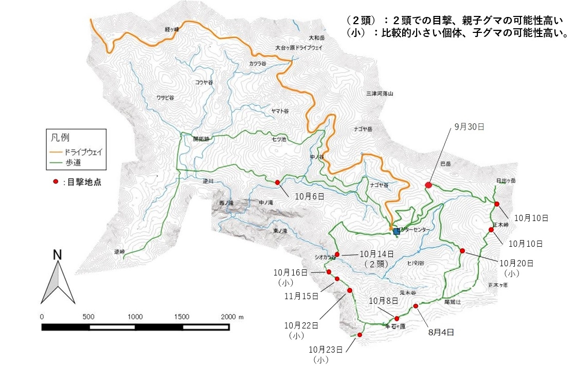 大台ヶ原地区におけるツキノワグマ出没情報(令和4年11月15日現在)
