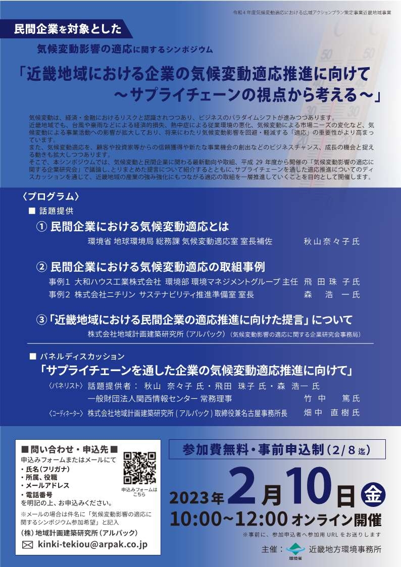 企業を対象とした気候変動影響の適応に関するシンポジウム 「近畿地域における企業の気候変動適応推進に向けて~サプライチェーンの視点から考える~」を開催します。