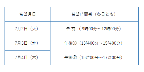 予約受付期間:令和6年6月26日(水)9時00分 ~ 訪問希望日の前営業日の15時00分まで