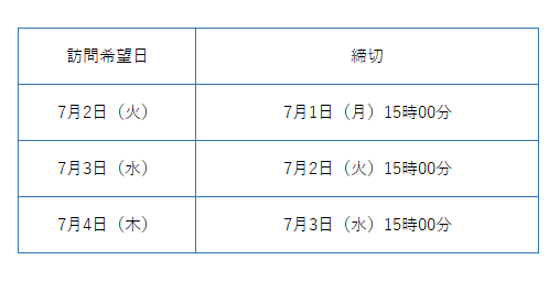 ・訪問期間:令和6年7月2日(火)~7月4日(木)